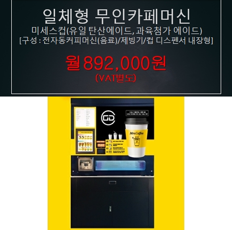 국내 탄산이 첨가된 에이드 구현이 가능 두 가지 모델 중 한 가지 모델인 미스터컵